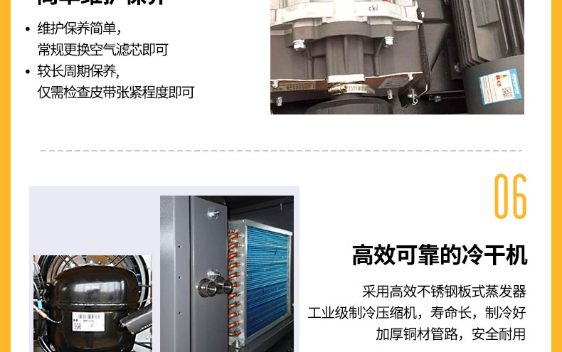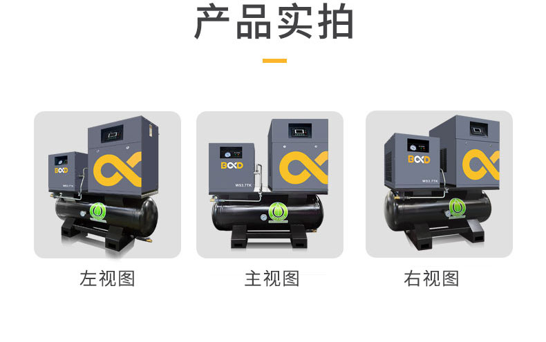 葆德渦旋式空壓機特點:220V/380V電壓可選,主機耐高壓、噪音低,振動小、節能穩定,可24小時連續運轉,無人值守自動化排水,型號:BD-4VW、BD-6VW、BD-10VW