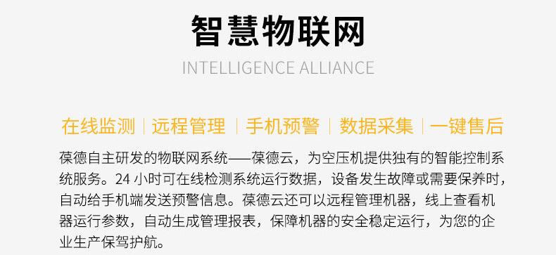 個性化控制系統,運行狀態一目了然,監控系統實時運行監管 節能穩定主機,耐高壓、噪音震動小,更節能,可24小時連續運轉 排水系統,運用電磁開關閥,無人值守,自動化排水 冷卻系統